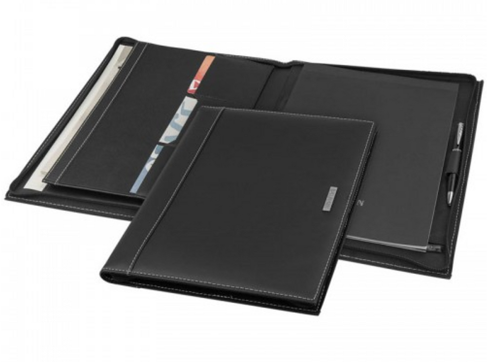A4 PU Leather Zipper Portfolio with pen loop and several pockets to organize your documents.