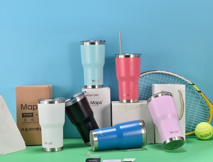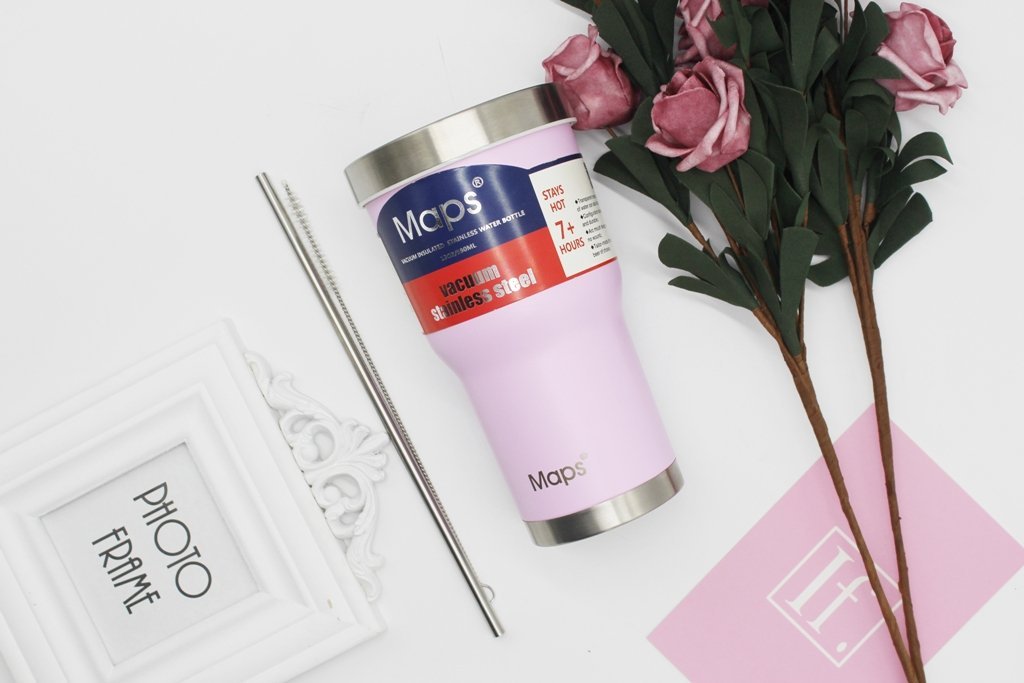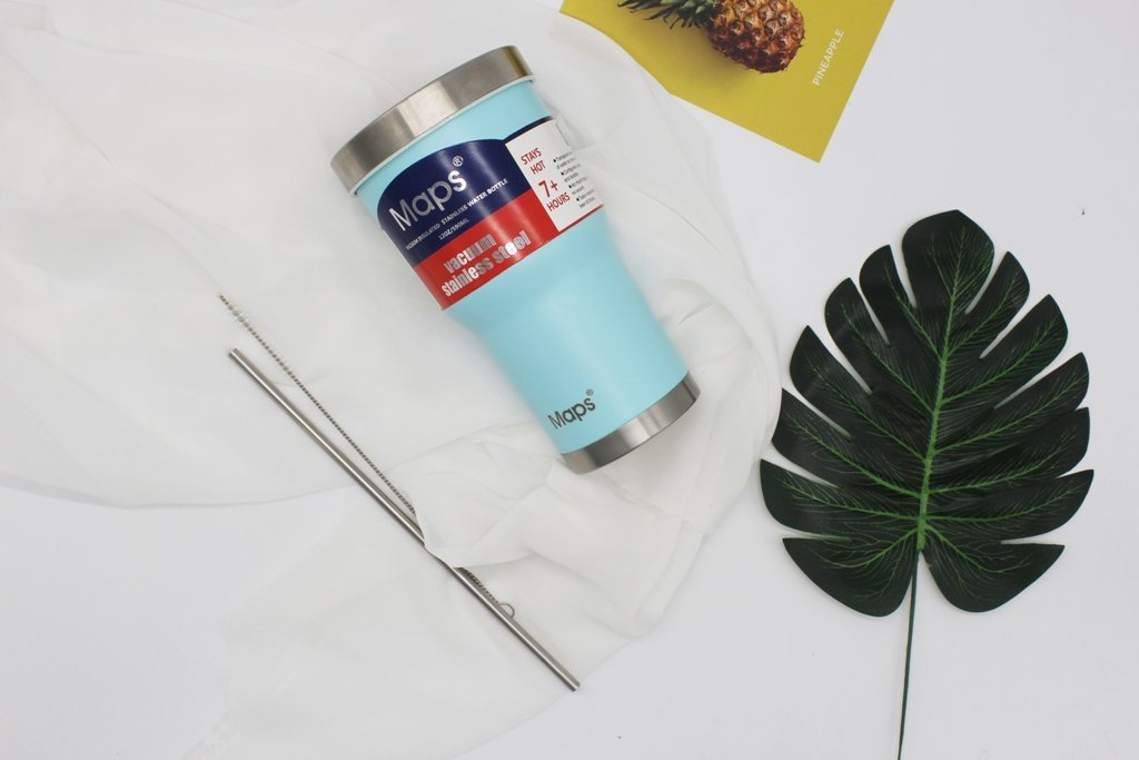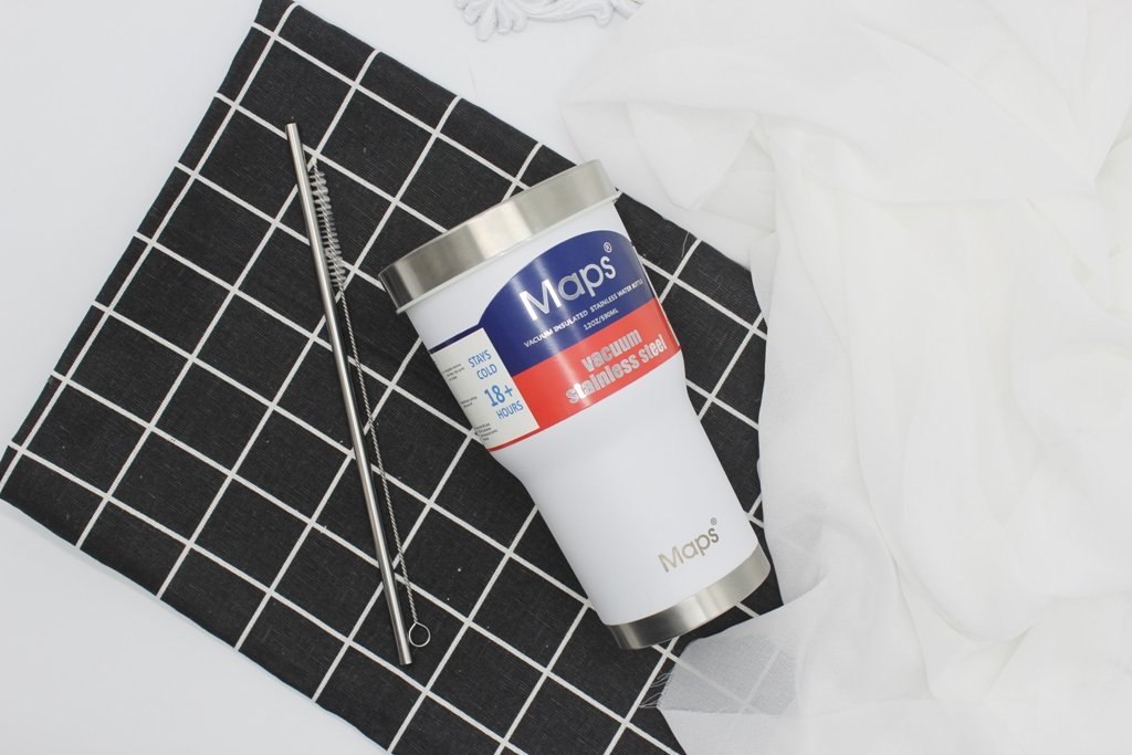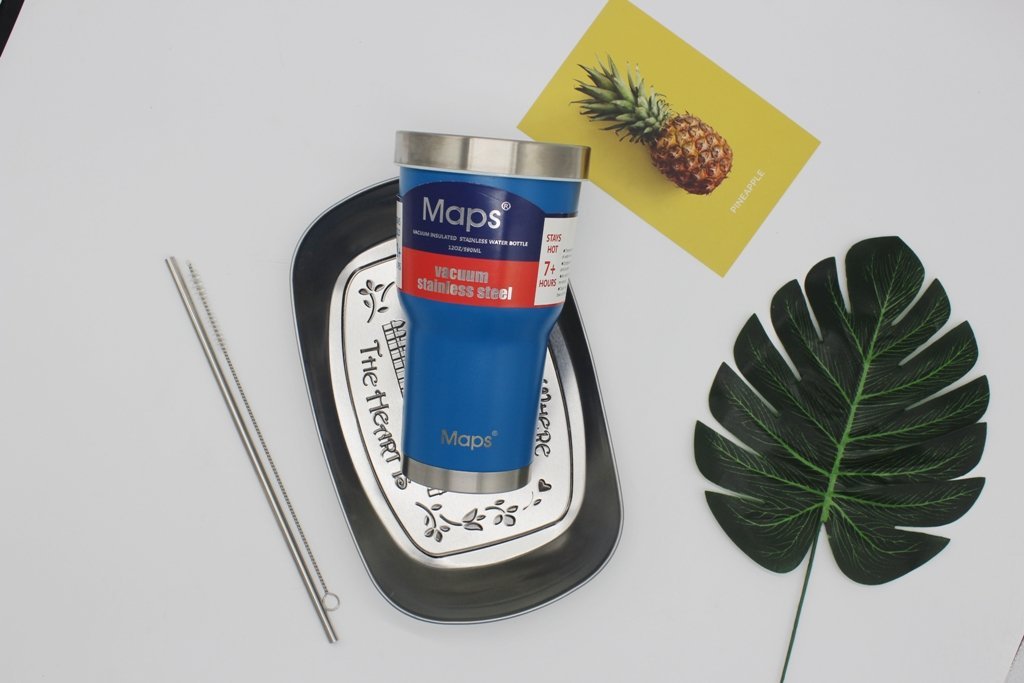 Maps Vacuum Stainless Steel Tumbler Mug with Straw Type A
